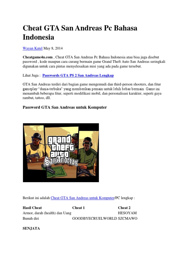 Cheat Gta San Andreas Pc Bahasa Indonesia