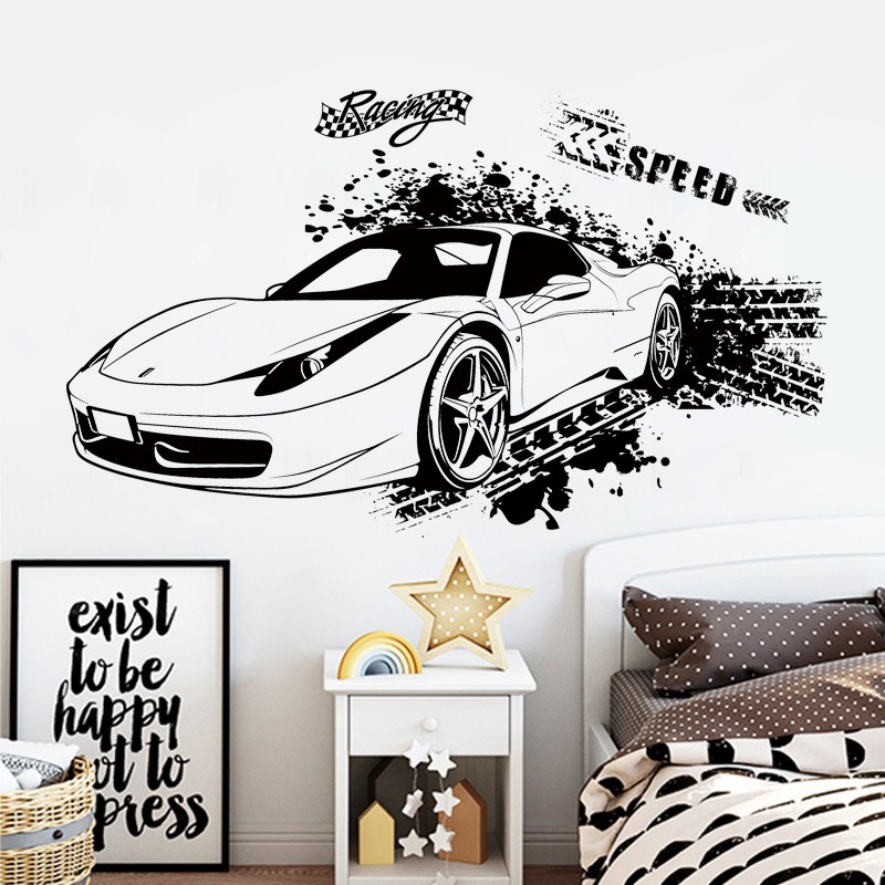 Hitam Dan Putih Mobil Sport Stiker Dinding Kamar Tidur Sofa